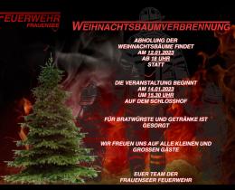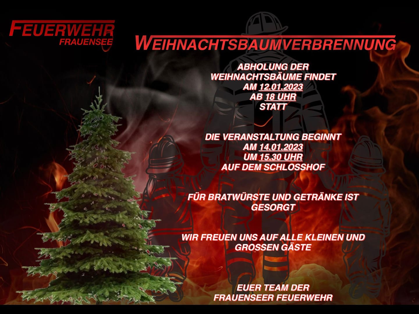 Am Samstag, den 14.01.2023 findet das diesjährige Weihnachtsbaumverbrennen statt.
