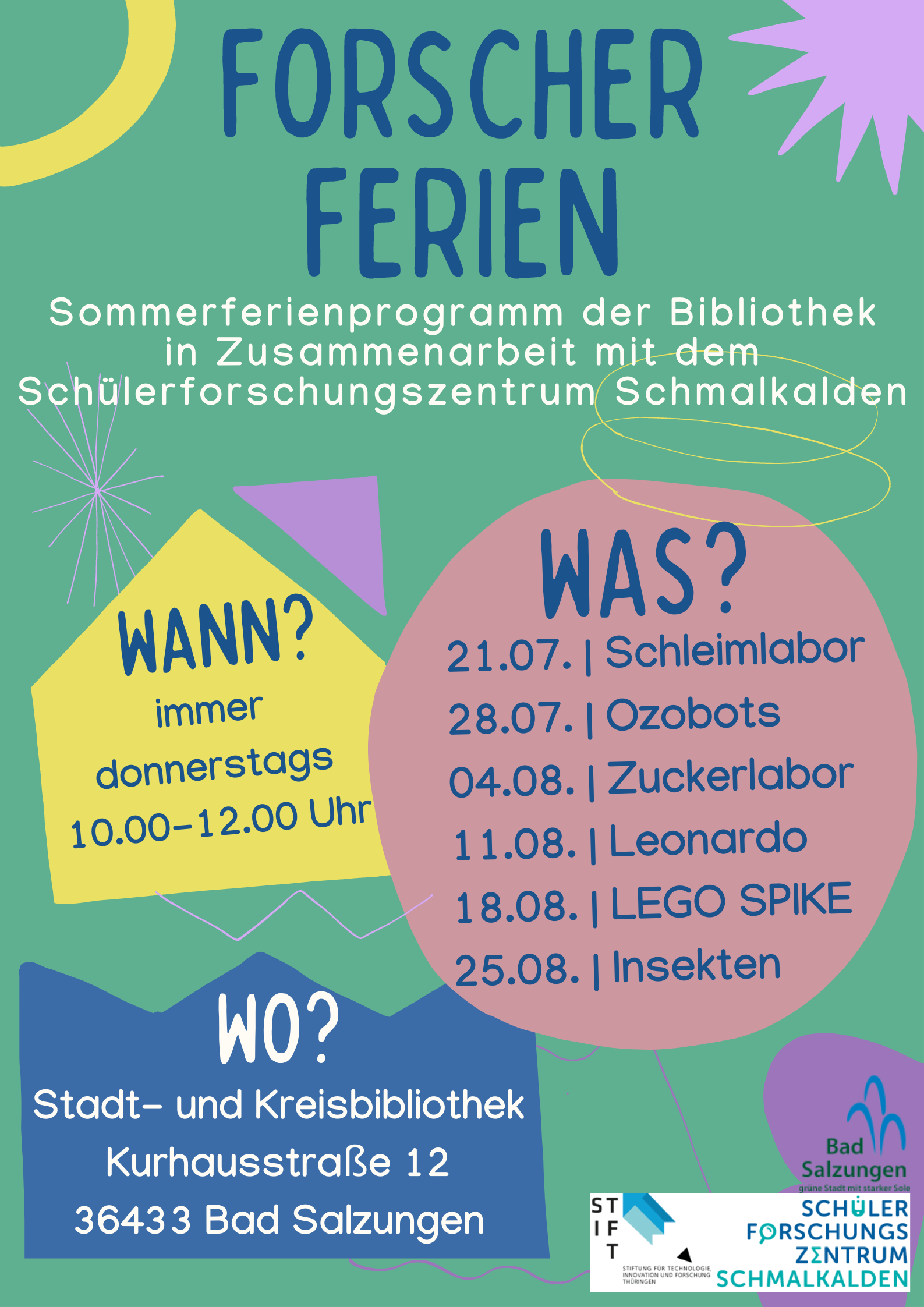 Die Stadt- und Kreisbibliothek bietet in Zusammenarbeit mit dem Schülerforschungszentrum Schmalkalden ein Sommerferienprogramm für Kinder an.